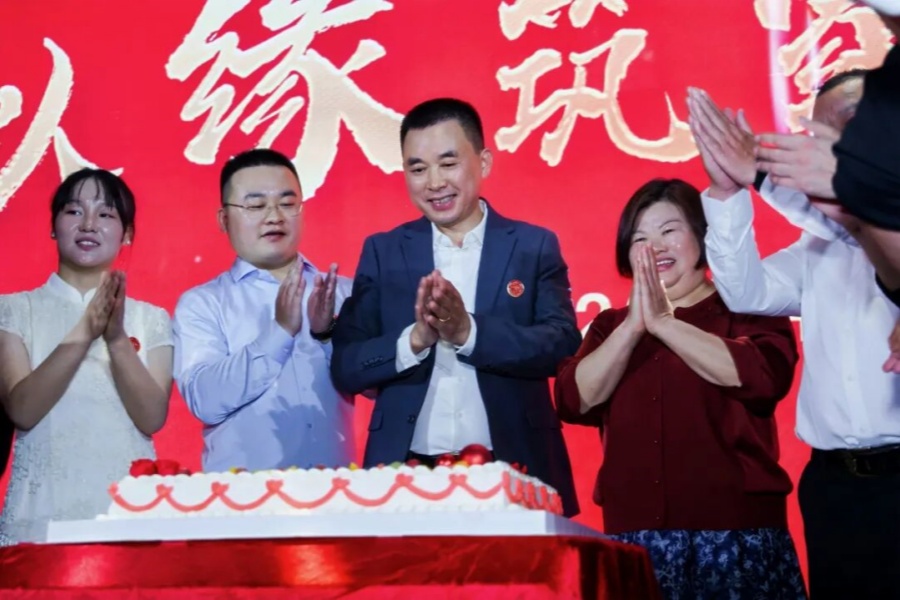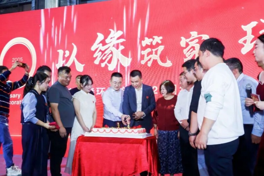 在大家美好祝愿和缘环装饰创始人 邵其金带领缘环人大合唱《众人划桨开大船》充满力量的歌声中,我们许下对未来的期许。邵其金与获奖代表们共同切开了象征甜蜜与圆满的缘环20周年庆典蛋糕,将现场气氛推向最高潮。