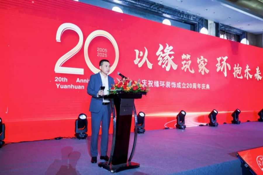 在这值得铭记的时刻,缘环装饰创始人 邵其金先生上台致辞。他深情回顾了公司二十年的发展历程,并分享未来面临的新的机遇与挑战。服务在升级,科技在变革,但我们对品质的追求、对客户的责任、对设计与施工的匠心,永远不会改变。