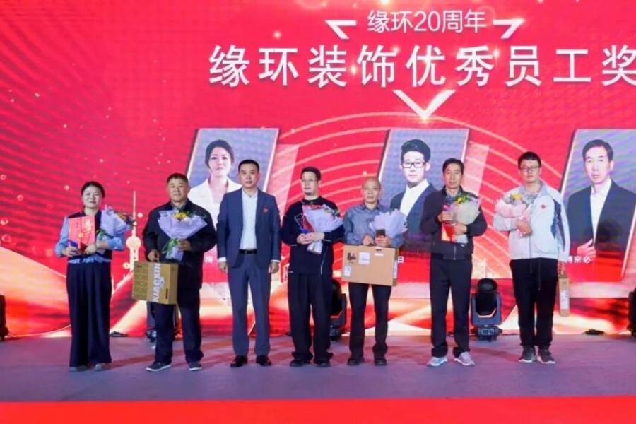 缘环装饰供应链品控督导、工程巡检 邵庆波为他们颁奖,并与获奖代表合影