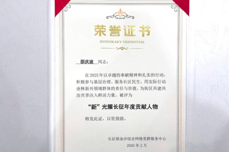 邵庆波代表上海缘环装饰,凭借对社区服务中的卓越奉献,获评 “新”光耀长征 年度贡献人物。